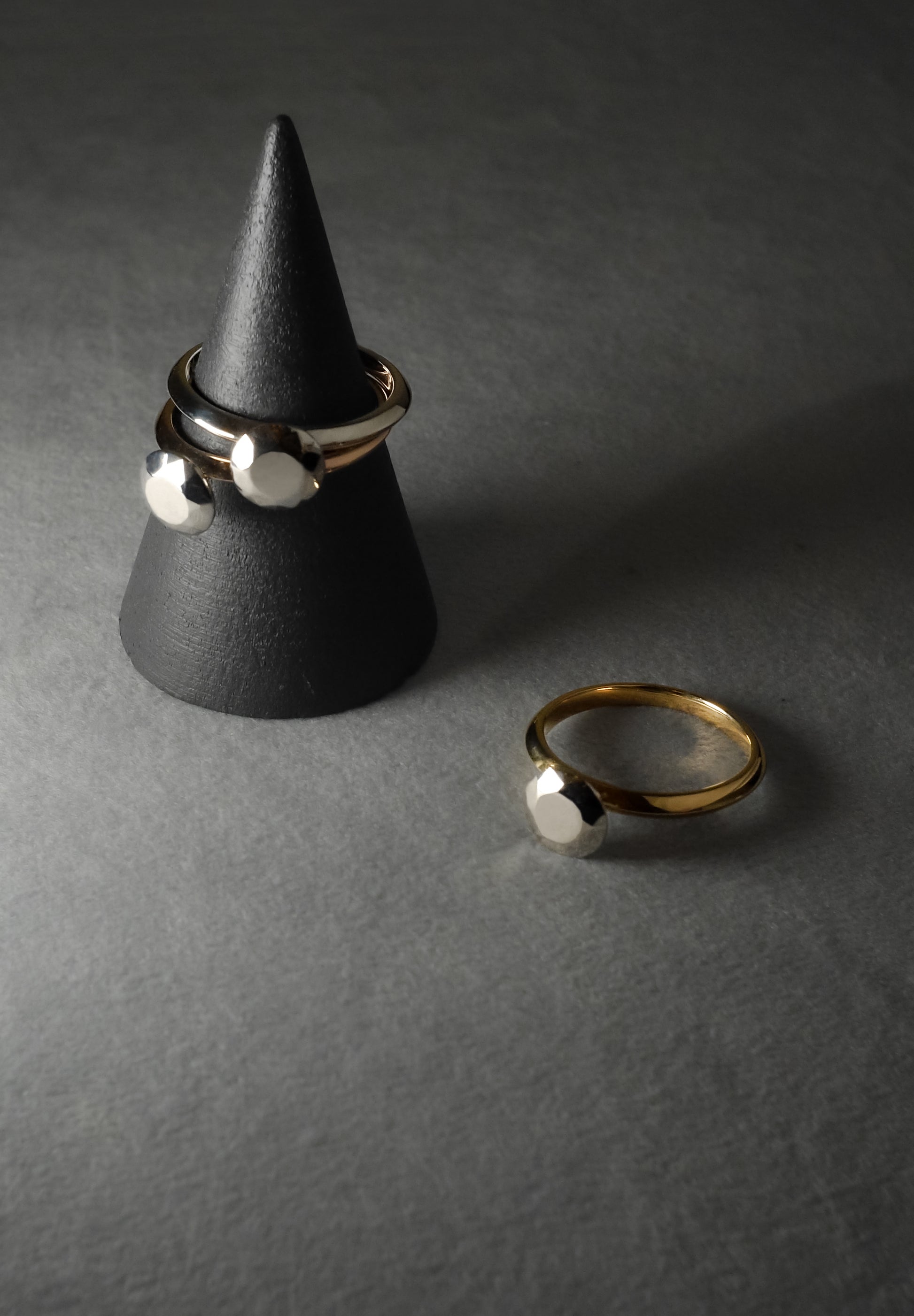 18-Karat yellow gold+Platinum900のファセットリング。