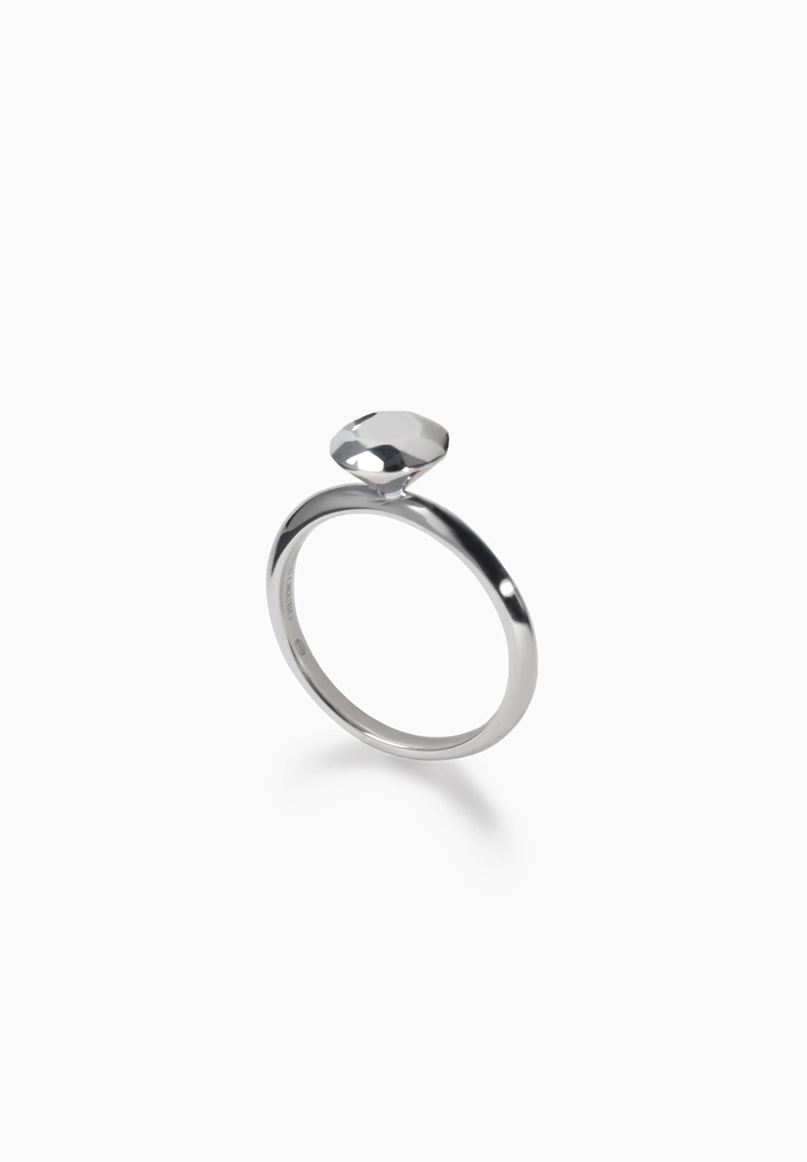 モダニズムの建築家ルイス・カーンの「全ての物質は光が燃え尽きた後のものである」という言葉に導かれたデザイン。ダイヤモンドリングを模し、究極的にミニマライズされた現代的なアプローチ。エンゲージリングにも最適です。