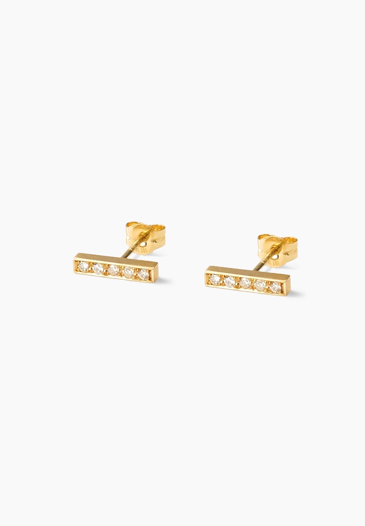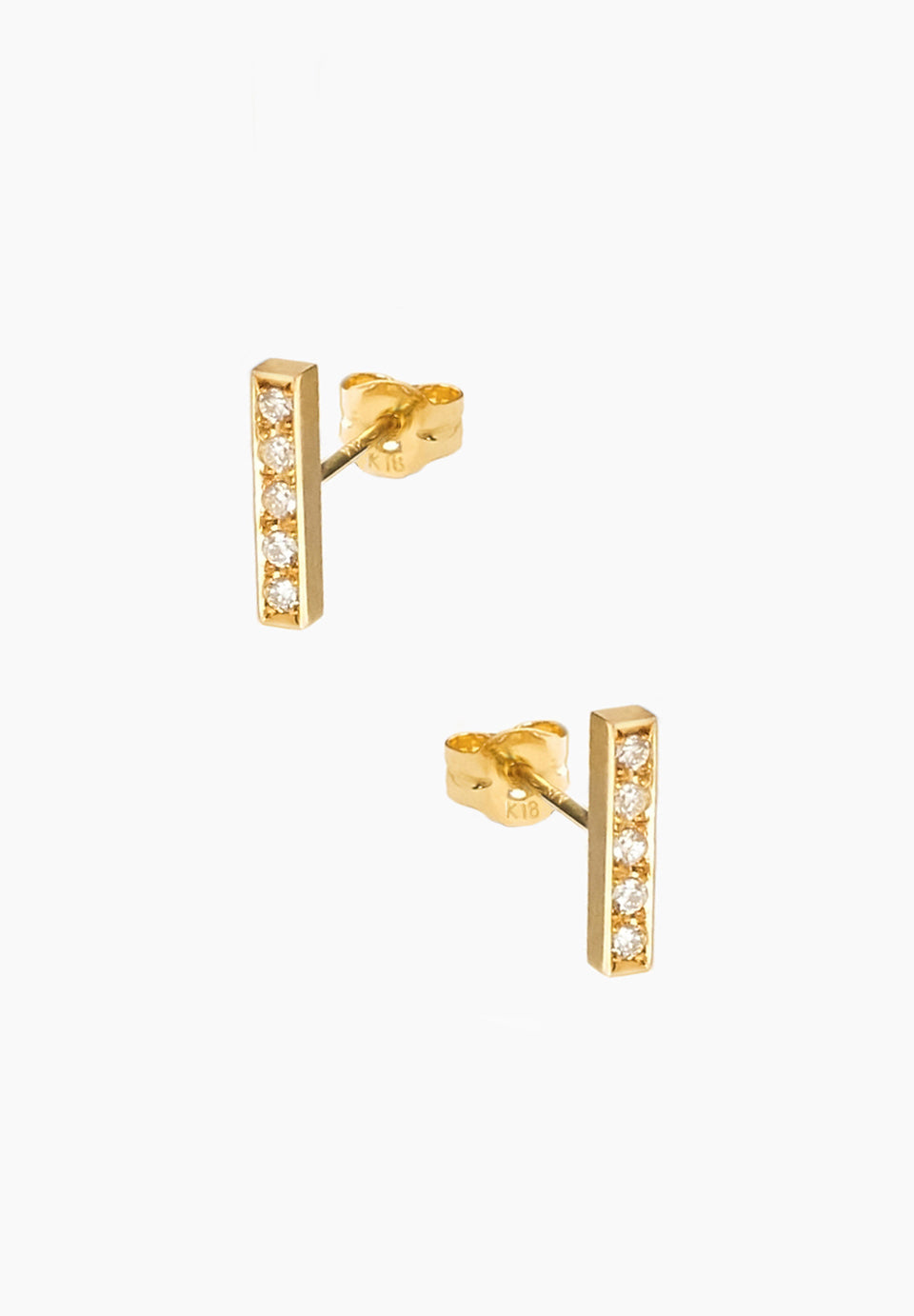 ミニマルなシルエットのダイヤモンドのピアス。静かなデザインながら、直線が感じさせる凛々しさを備えた、どんなシーンにも合わせられるアイテム。