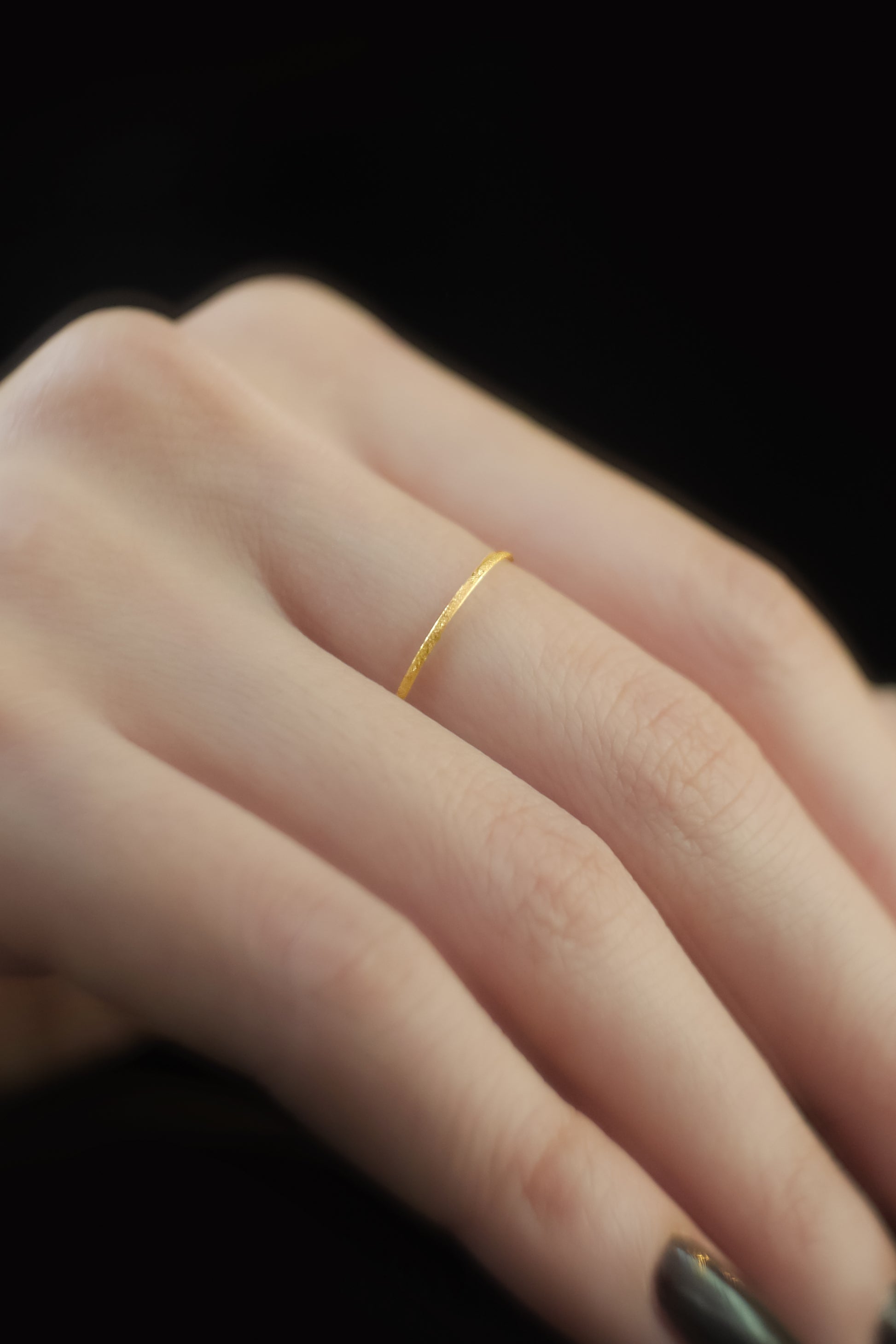 Saint. Un anneau en fil triangulaire d'un diamètre d'environ 1 mm. Parce qu'il n'est pas coulé, il n'y a pas de bulles d'air qui se produisent lors du moulage d'anneaux ordinaires et la surface a une belle finition semblable à un miroir. Il s'agit d'une bague de haute qualité qui se caractérise par sa grande résistance car elle est fabriquée en métal nu. Le design comporte un coin triangulaire sur le dessus, ce qui lui confère une sensation plus décorative et une sensation audacieuse.