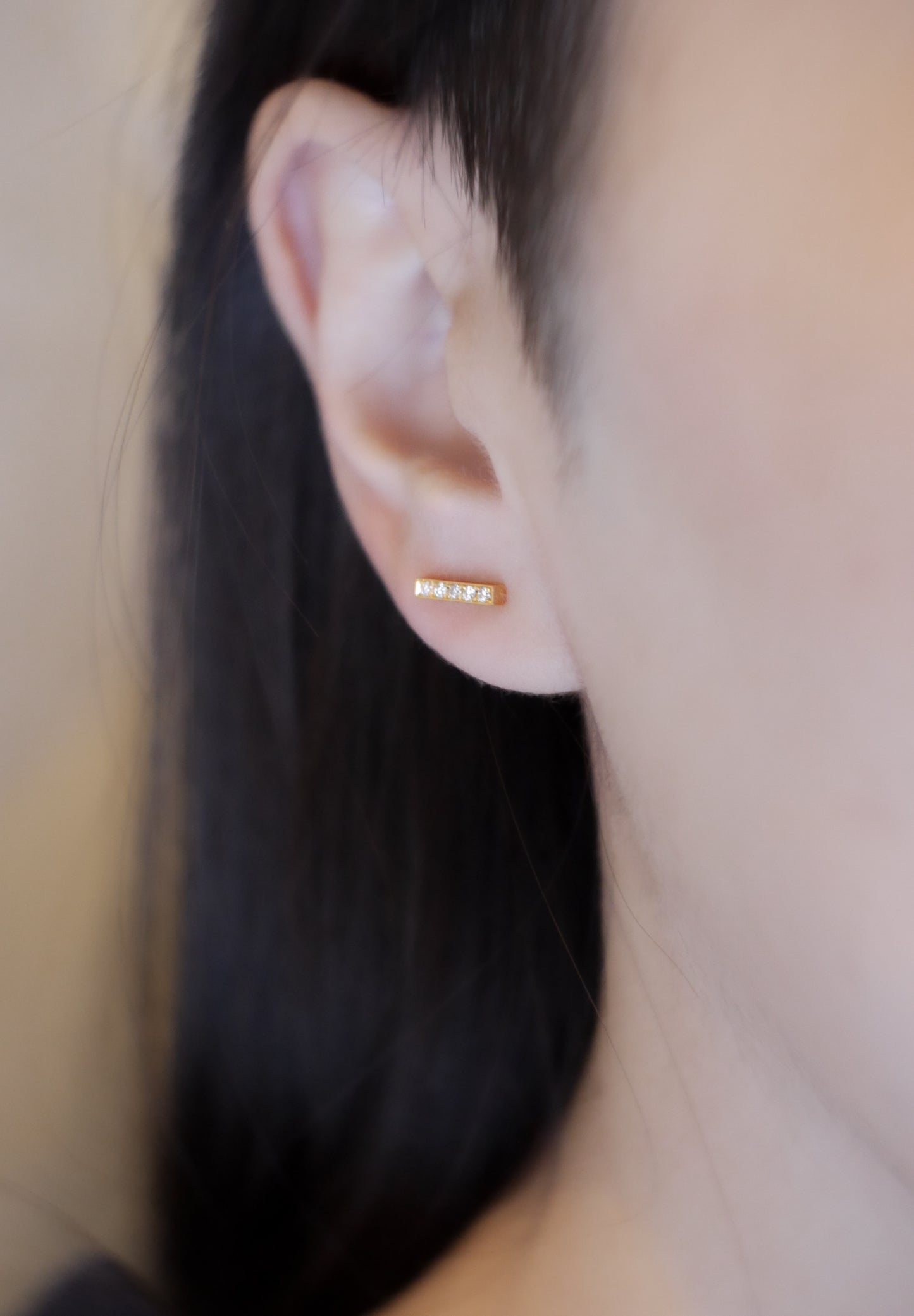 미니멀한 실루엣의 다이아몬드 이어링입니다. 차분한 디자인이면서도 중후한 직선이 있어 어떤 상황에도 잘 어울립니다.