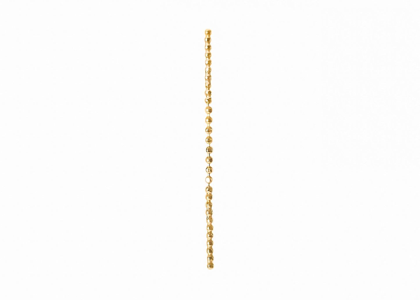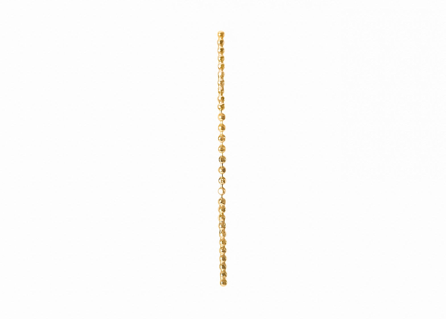 約1.0mmのボールカットチェーンが、房のように重なり、繋がり、美しいシルエットを形成しています。また、ボールチェーンを溶接し固める技術により、無駄を削ぎ落とした完全にミニマルなスタイルを実現させました。