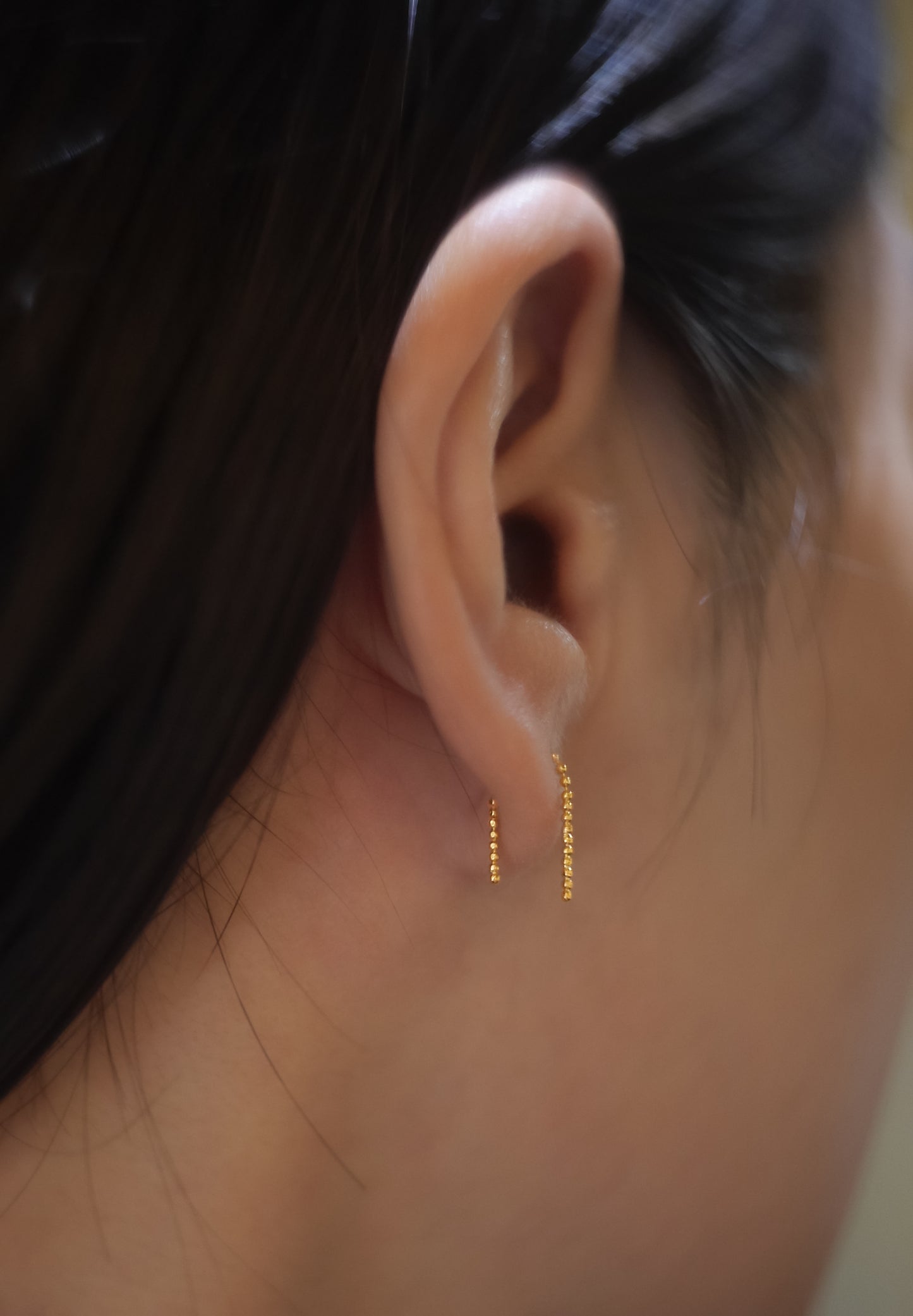 このピアス"null"は両端が直線の状態に固める加工が加えられており、装着するときにはキャッチとしての役割を果たし、且つ本体のピアスが抜けづらい仕様となっています。