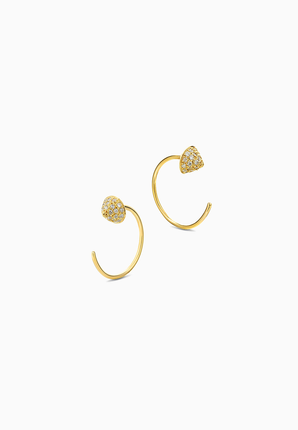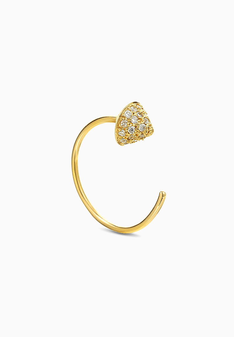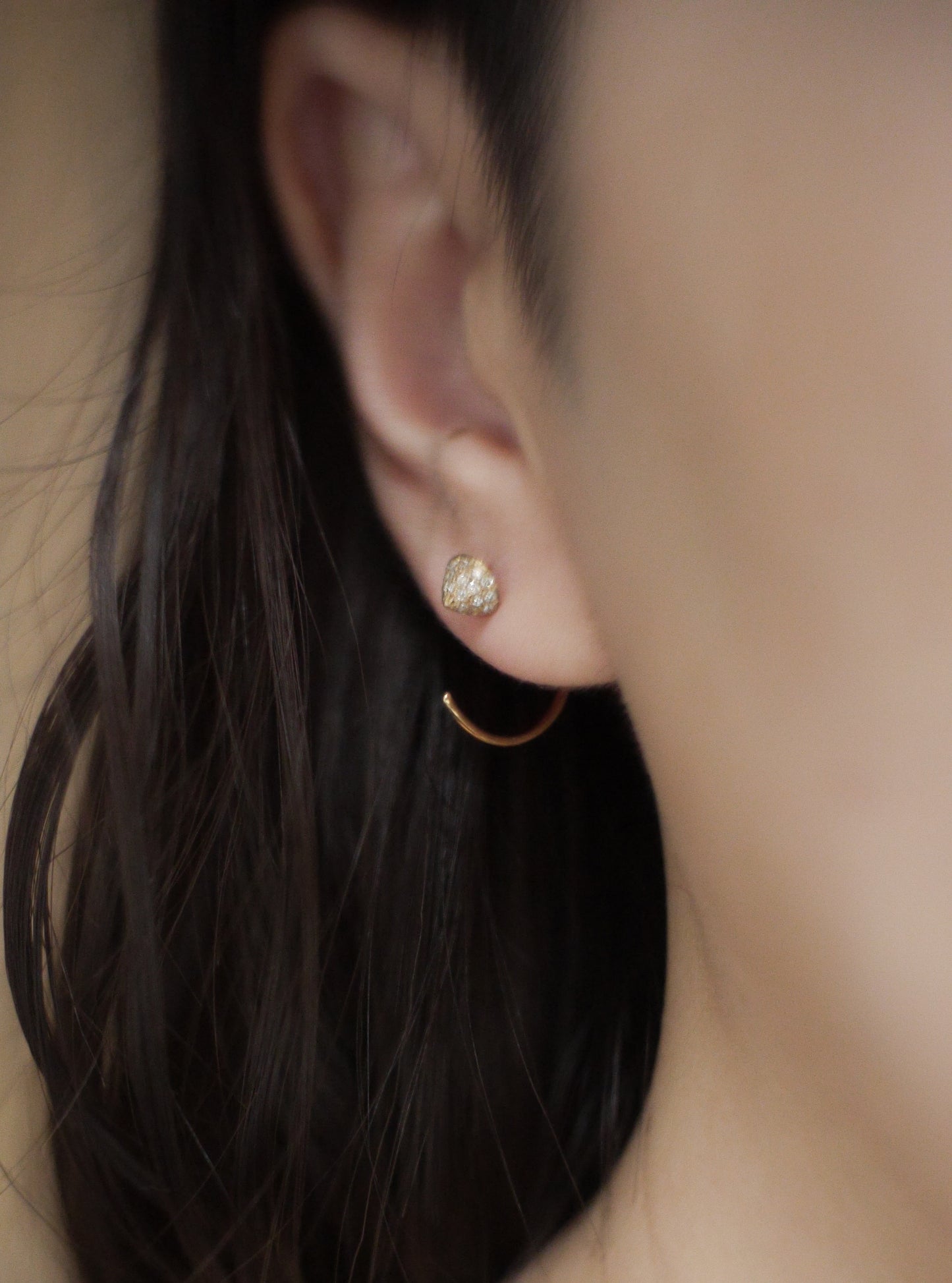 角のような円錐型のモチーフのピアス。ピアス不要の構造でシンプルに装着することができる。強さと知性を感じさせるアイテム。
