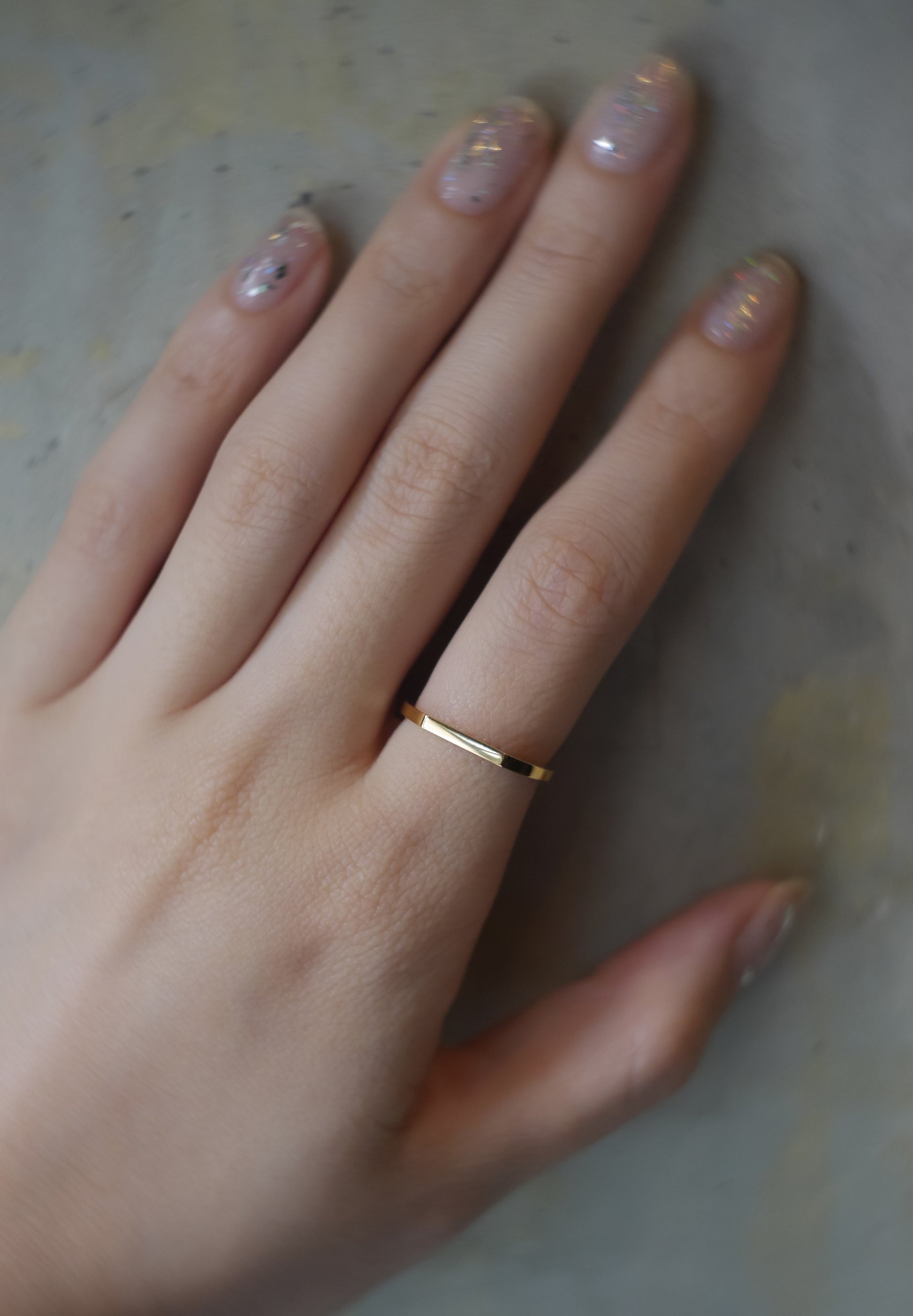 ウェディングバンドリング"KNIGHTSBRIDGE"(ナイツブリッジ)。騎士の姿を想起させるような洗練されたフォルムと、大河に架かる橋のような重厚感のあるボリューム。無駄のない端正な形と威厳ある雰囲気が同居するリングはそこにあるだけで特別で壮麗な力を感じさせます。