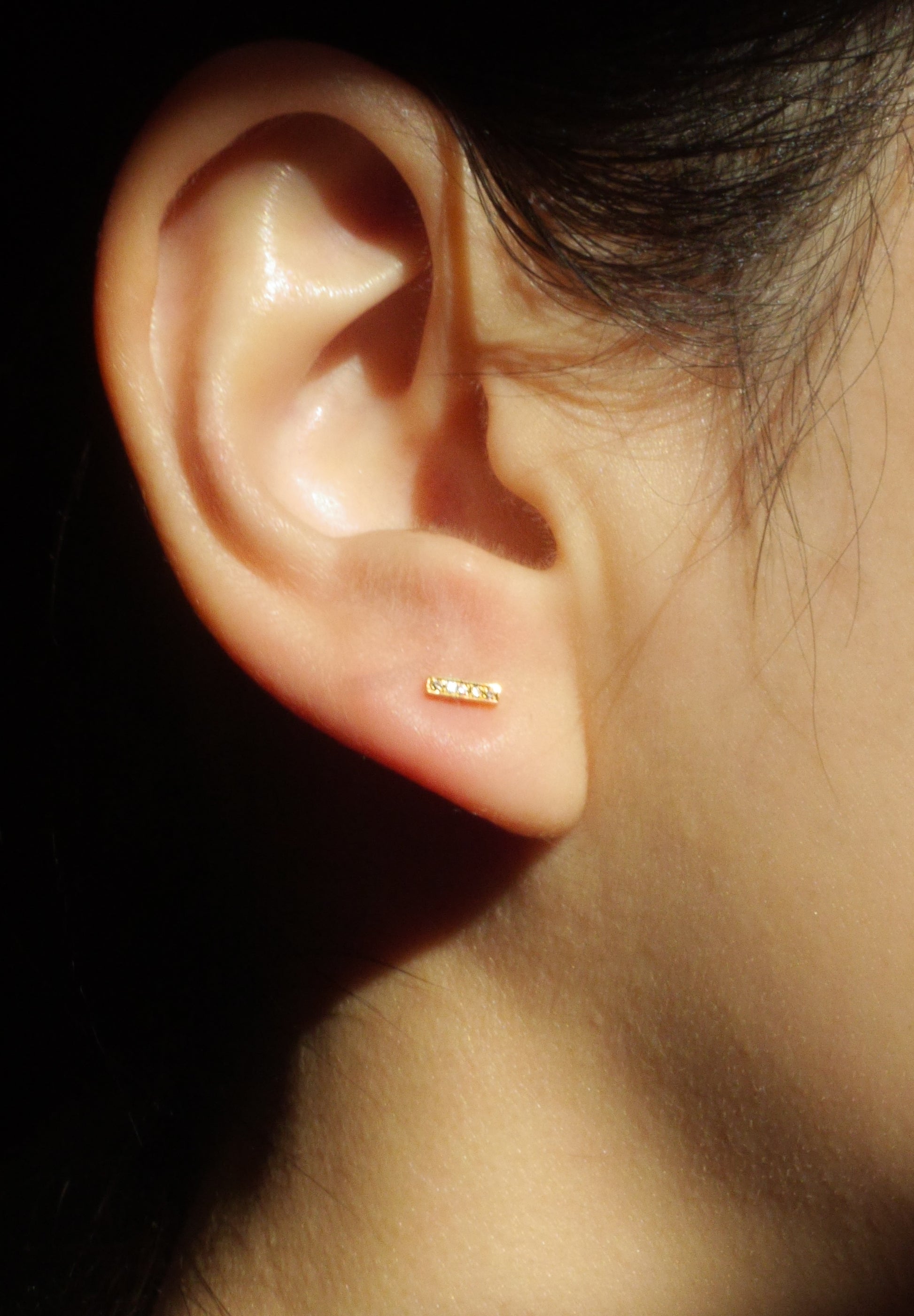 ミニマルなシルエットのダイヤモンドのピアス。静かなデザインながら、直線が感じさせる凛々しさを備えた、どんなシーンにも合わせられるアイテム。