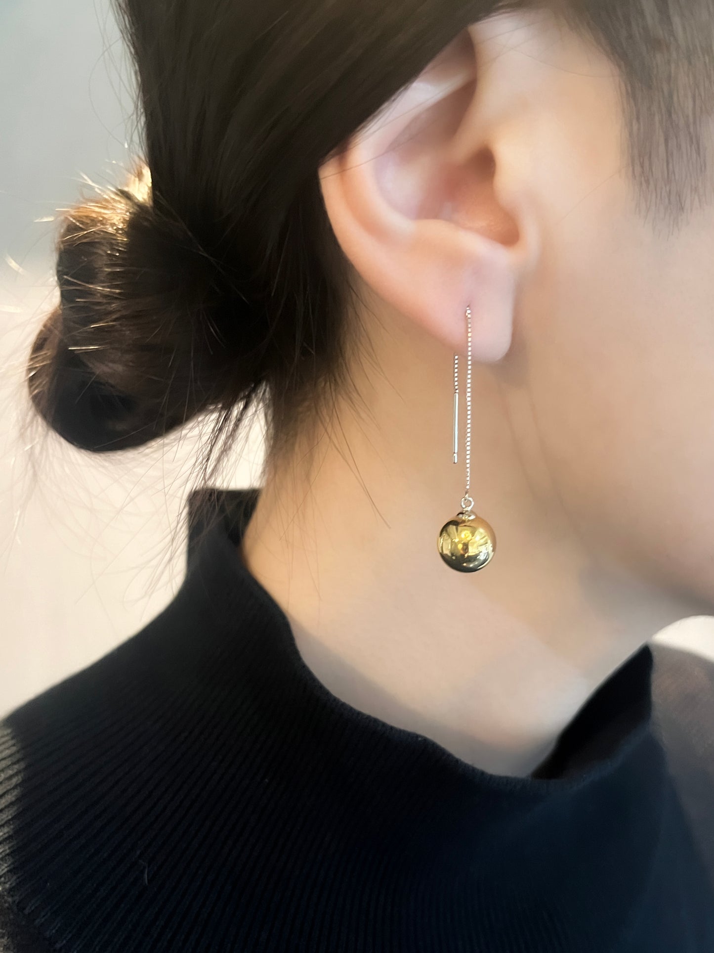 美式耳环,由 K18 黄金球体和铂金链条部件制成。这种极其简约的设计和形式,有一种端庄的存在感,可以说是通用的。您可以从 5 种不同尺寸的球体中选择您最喜欢的形状,您将能够找到适合您风格的尺寸。比如10毫米的球体给人一种端庄、稳重的感觉,而2毫米的小球体则有一种可爱、精致的气息。对于各种尺寸的耳环,SHUN OKUBO公司提供的高品质材料和设计营造出一种简单却又出奇的奢华和优雅的氛围。